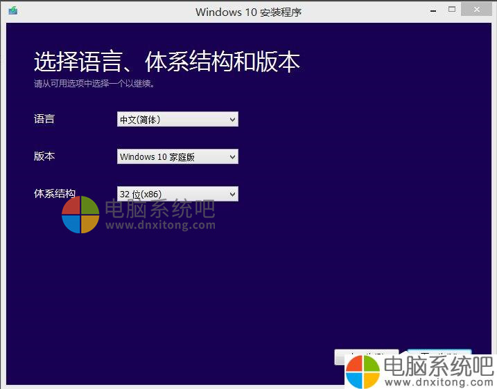 5、选择你的安装盘的语言及版本信息,点击下一步,如下图所示: