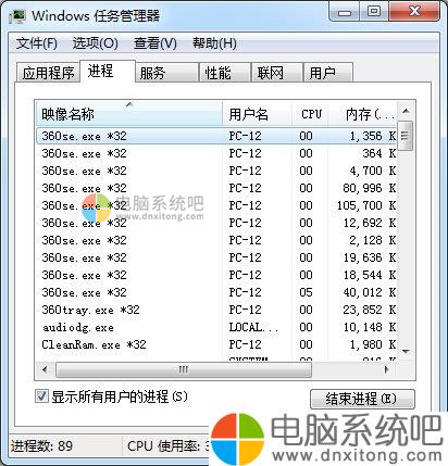 如果发现CPU使用率较高,我们可以进入任务管理器,关闭一些不需要的程序与进程,如下图: