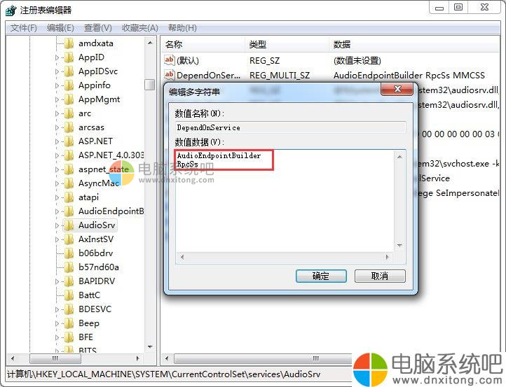 如上图,接着将数值数据中,仅保留AudioEndpointBuilder和RpcSs,其他一概删除,然后退出即可,如下图: