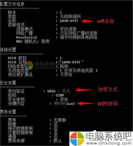 3、之后你就可以在下面看到电脑此前连接过的WiFi信息、加密方式以及WiFi密码了。