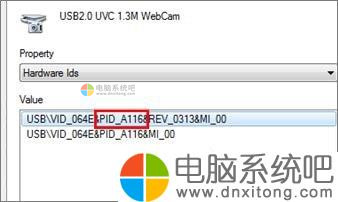 3、在“ASUS USB2.0 WebCam属性”中点选[详细资料],在“硬件ID”中找到如附图所示的PID 号码;