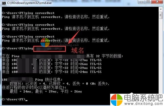 9、之后,在控制台下输入“ping + 域名”,在域名是有效的情况下,会首先查找hosts文件中的信息,进行ping。则出现的信息ping的信息,同时显示的ip地址则就是hosts文件中你所配置的地址。