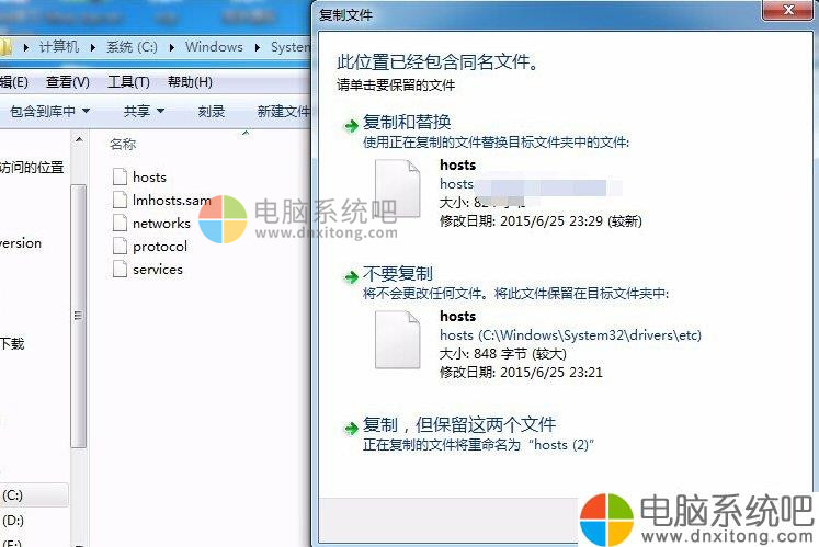 5、保存完成之后,拷贝对应保存好的hosts文件,拷贝到“C:\Windows\System32\drivers\etc”目录下(默认位置为%SystemRoot%\system32\drivers\etc\)。
