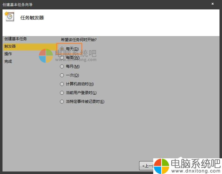 设置出发计划的条件,这里选择“每天”,然后点击“下一步”。