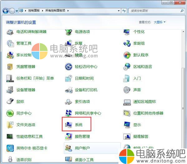 2、在控制面板内,打开“电脑系统”快捷图标。