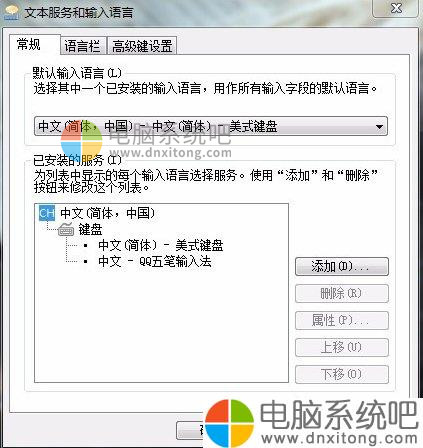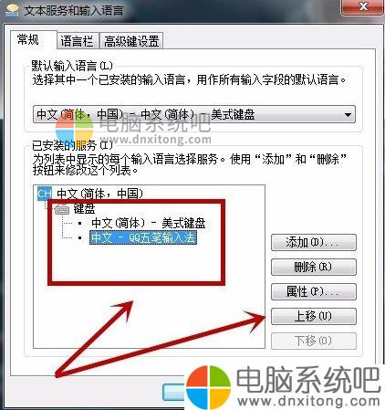 4、这时我们可以选择任意一种输入法,然后在右边有一个上移和下移的按钮。根据需要选择。