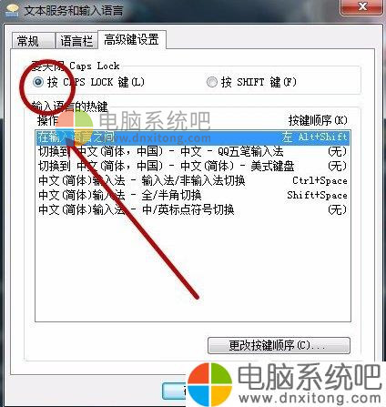 6、最后我们在高级设置里,可以选择切换几下的内容是什么,还有一个对于游戏玩家来说比较重要的大写capslock,可以设置成其它热键,这样就不会误操作了。