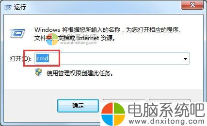 2、运行里面输入“cmd”,然后点击确定。