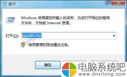 7、如果还不行,可以在开始→运行(Win8、10操作电脑系统可以使用Win+R调出运行)→输入: gpedit.msc 回车打开组策略编辑器;