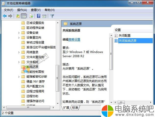 8、打开组策略→计算机配置→管理模板→电脑系统→电脑系统还原,找到并双击打开【关闭电脑系统还原】;