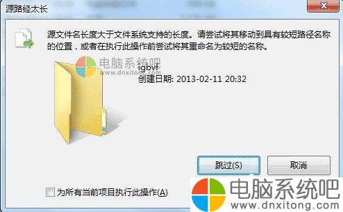 源路径太长:源文件名长度大于文件电脑系统支持的长度。请尝试将其移动到具有较短路径名称的位置,或者在执行此操作前尝试将其重命名为较短的名称。