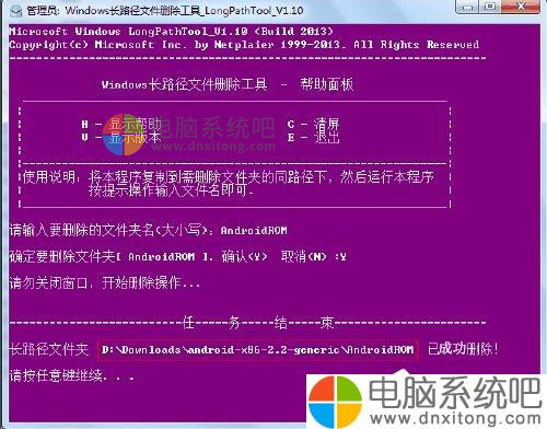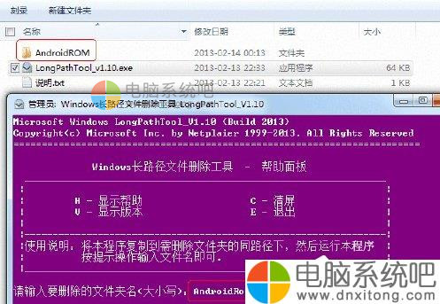 3、运行LongPathTool_v2.20.exe,再需输入文件名的地方输入要删除的文件名:“AndroidROM”(注意大小写)。