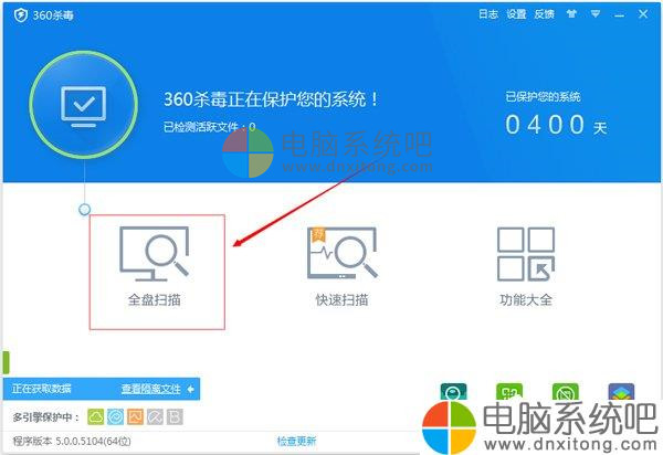 方法三:查看电脑是否中毒。电脑CPU使用率过高有可能是中毒后的症状,把你的杀毒软件升到最新版本后,然后断网全盘杀毒,如图: