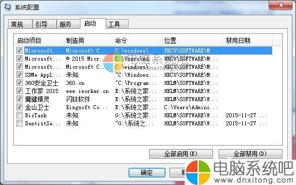 输入完之后按回车进入启动设置项,在这里找到启动,取消不需要的启动项,如图: