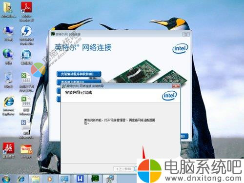 6、网卡驱动安装完成后,弹出如下图所示界面,同时可以发现桌面右下角的上网图标的差号标志消失了,出现下图所示的标志后即可以正常上网喽。