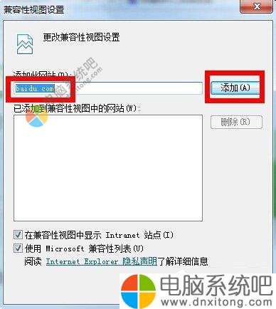 7、将你需要兼容性视图的网站添加到网站列表即可!如下图所示!