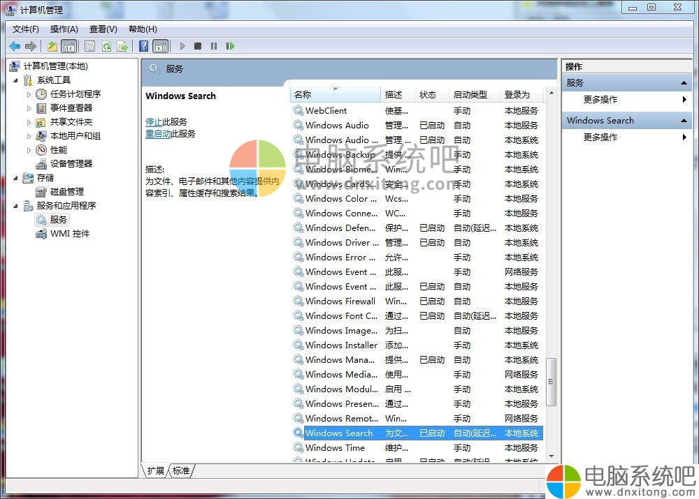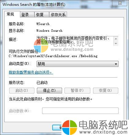 在开始搜索栏中输入“services”,在菜单里点击“查看本地服务“,在弹出的对话框里寻找到”Windows Search“,然后右击选择停止此服务即可。