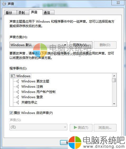 在控制面板里找到”声音“选项并打开,然后在声音控制标签中去掉win7电脑系统默认的“播放windows启动声音”选项的勾选就可以了。