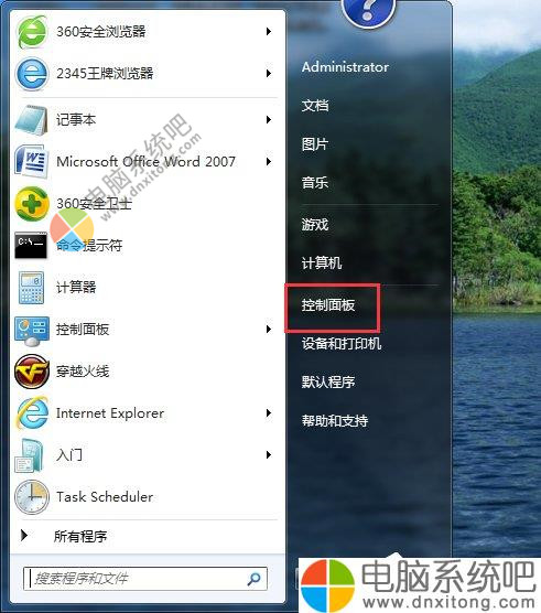 2、首先、点击“WIN”弹出界面的“控制面板”