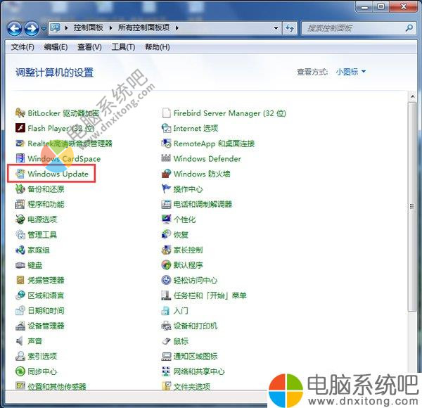 3、其次、在控制面板中找到“Windows Update”。并双击进入。