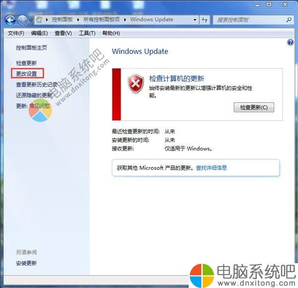 4、在Windows Update中找到“更改设置”并双击进入设置界面
