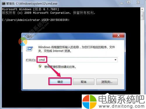 1、虽然还原属性去掉了,但还有电脑系统保护属性,要赋与用户完全控制权力,才能删除这个文件夹,需要用命令方式,打开运行程序,输入cmd命令,打开命令提示符。