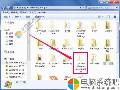 5、然后就可以到C盘目录下,把这个System Volume Information文件夹给删掉,其它磁盘下的这个文件夹,也可以用上面8-11步方法来删掉。
