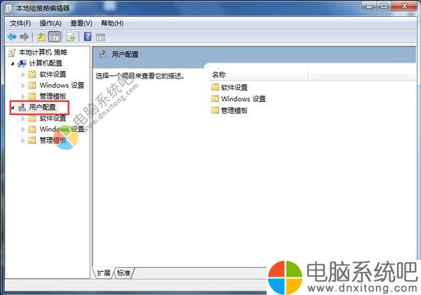 2、进入本地组策略编辑器,左边是计算机配置和用户配置两个分组,右边是相关设置项;