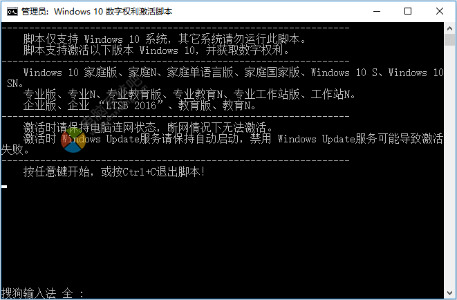 Windows 10 自动批处理版数字权利激活工具是远景论坛一位大神 by : 默然King 参考了 Win10数字权利激活工具HWIDGen 及 翻译数字权力生成方法 这两个文章制作而来的,纯批处理模式激活让你更放心,更安全的激活系统不必为安全而考虑太多,此批处理可以激活大多数Windows 10 系统,如果遇到不成功的,激活有可能受网络等影响一次不会成功,遇到首次激活不成功的,大家可以多试几次,脚本仅支持 Windows 10 系统,其它系统请勿运行此脚本,并获取数字权利,脚本支持 Windows 10 家庭版、家庭N、家庭单语言版、家庭国家版、Windows 10 S、Windows 10 SN,专业版、专业N、专业教育版、专业教育N、专业工作站版、工作站N、企业版、企业 “LTSB 2016”、教育版、教育N。