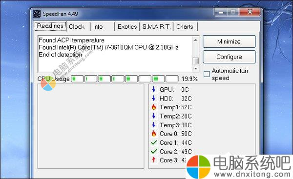 你可以进入计算机的bios 中看到计算机各部件的温度信息,当然你也可以在电脑系统中使用一些软件进行查看,如SpeedFan, AIDA64等,如果电脑发现温度过高的话,建议将计算机拆开进去灰尘清理,清理后你会发现电脑运行速度快了很多,也不会在那么经常的容易卡顿了。