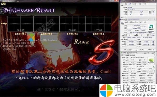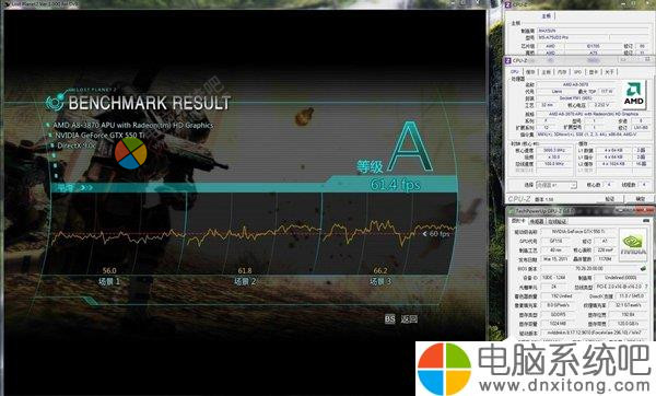体验平台:A8 3870K处理器、九州风神黑玉至尊散热器、铭瑄A75主板、梅捷GTX550Ti枭龙显卡、金士顿2G DDR3 1333(超频1600使用)、希捷1TB硬盘、昂达400W电源等: