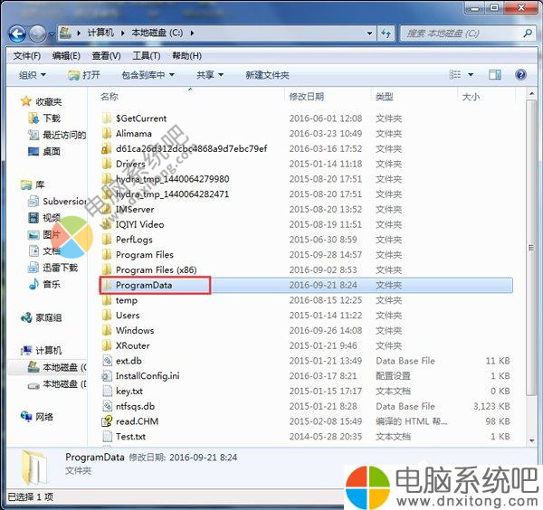6、这时,我们在找到C盘根目录,ProgramData文件夹是不是就出来了!