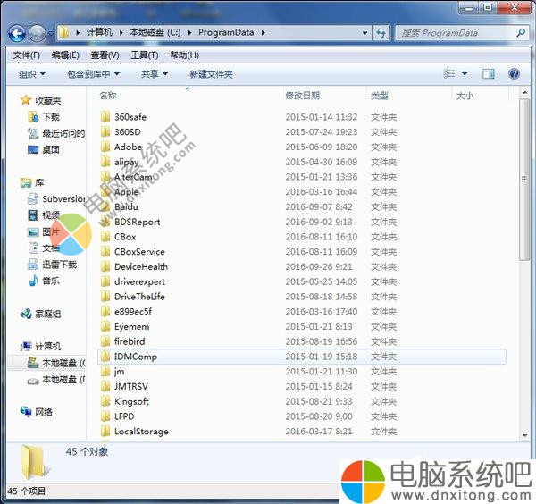 7、打开ProgramData文件夹,我们可以看到其中包含的具体内容。