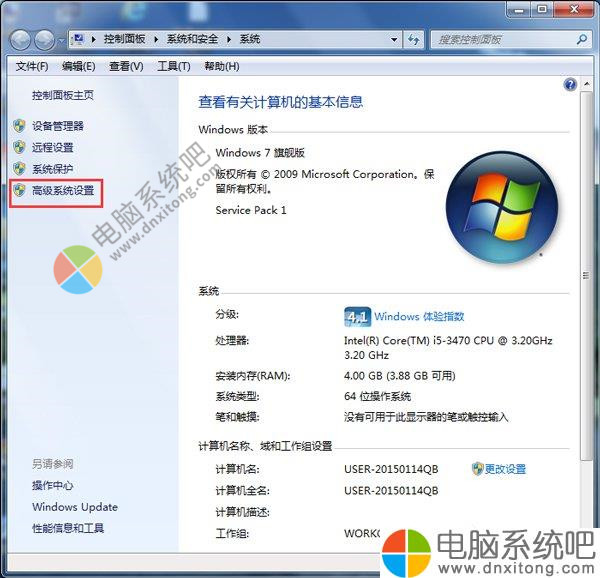 2、左侧栏中点击“高级电脑系统设置”项。