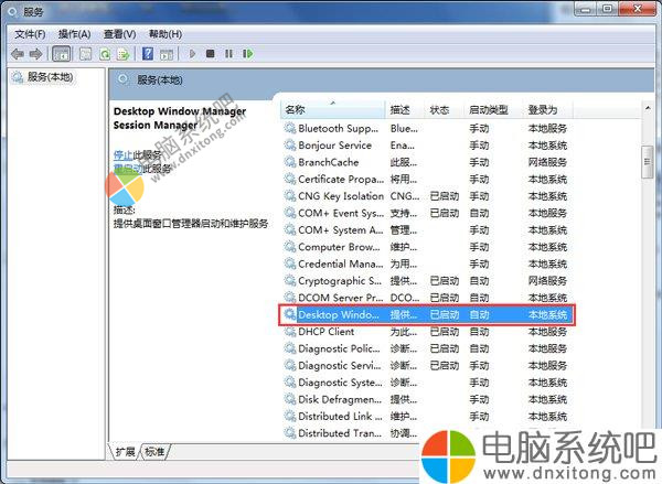3、在右边窗口找到名称为“Desktop Window Manager Session Manager”的服务,双击打开。