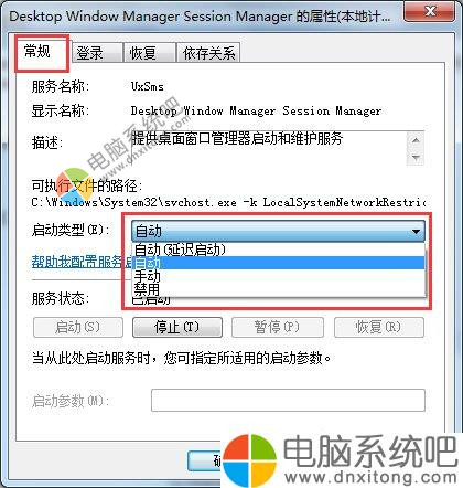 4、弹出的界面,点击“常规”选项卡,点击启动类型的下拉框,选择“自动”。