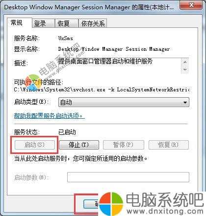 5、服务状态下点击“启动”按钮,最后单击“确定”,关闭服务对话框。