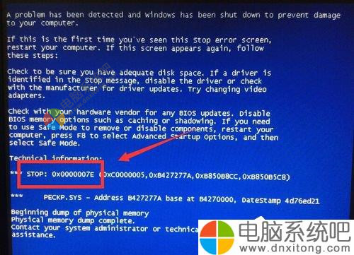 不过要再次确认电脑蓝屏代码是:“0X0000007E”,如图: