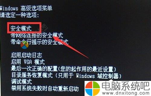 2、选择通过键盘上的上下左右键,选择“安全模式”,进入电脑电脑系统(安全模式)下,如图: