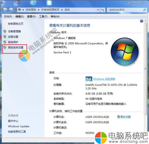2)在左侧菜单,找到“高级电脑系统设置”