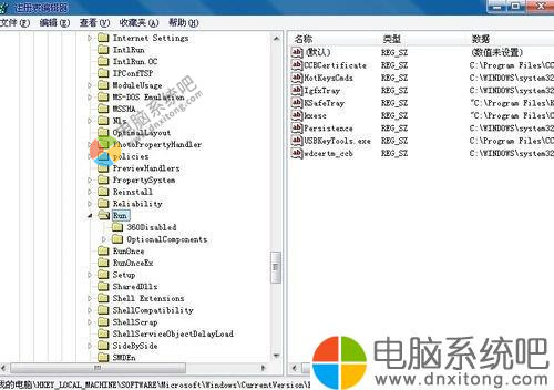 3)第二个位置是HKEY_LOCAL_MACHINE\Software\Microsoft\Windows\CurrentVersion\Policies\Explorer\Run,同样的右侧也是启动项,把一些没用的,也删除了