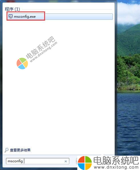 1)点击“开始”菜单,在最下面的程序搜索中输入:msconfig ,回车或者单击程序。