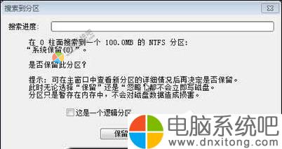 3、开始搜索后,DiskGenius会将以后的硬盘分区一个个显示,这个时候,你需要自己来判断搜索到的分区是不是你丢失的分区,如果是,点击保留即可。