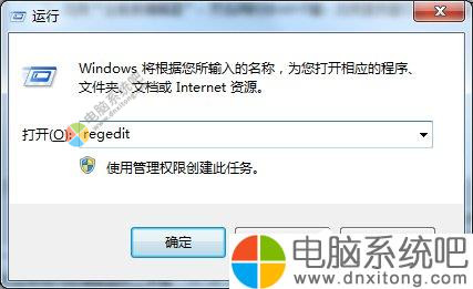 2、首先同时按Window键+R,弹出运行窗口,并输入:regedit。