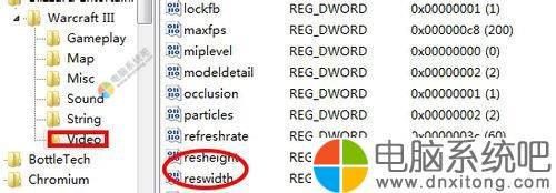 4、出现Warcraft III,并在该项下面点击Video,展开右边的项目,我们注意到如图所表的两项,就是我们的分辨率宽高了。