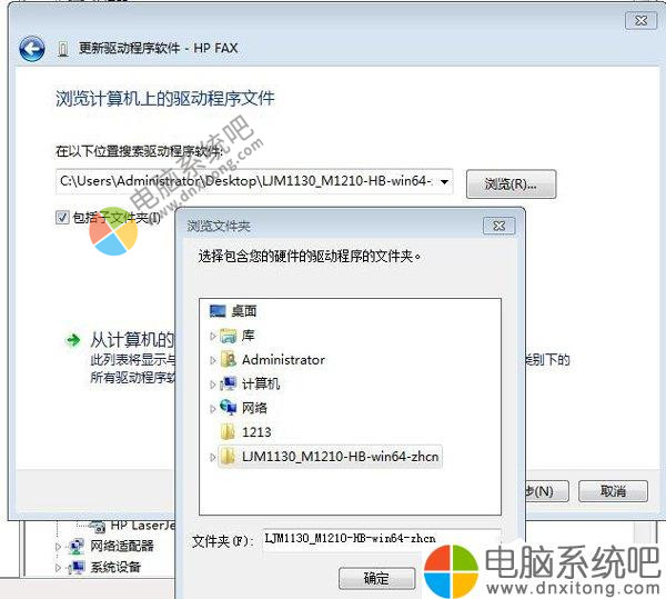 6、点“浏览”选择驱动程序所在目录(也就是刚才解压出来的那个文件夹)并点确定,如图: