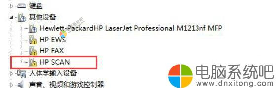 在设备管理器 HP SCAN 上点右键选更新驱动程序和软件 如图: