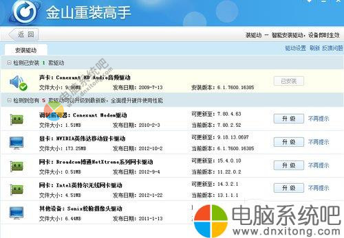 第二步,确定驱动程序安装情况(硬件使用需要驱动支持,虽然声卡驱动一般已经安装,但为了排除问题还是细致排除一遍)运行驱动精灵之类的软件或者安全软件的驱动检测功能。如果驱动没有安装则安装更新驱动,如果已经安装则进入下一步排查。