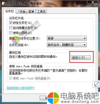4、在隐藏不活动图标左边打上勾以后,然后鼠标点击属性窗口右边的自定义按钮。