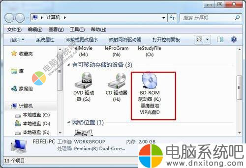 7、此时查看”我的电脑“,就会发现已经成功虚拟出一个新的光驱盘符。然后就可以像物理光驱一样使用虚拟光驱了。